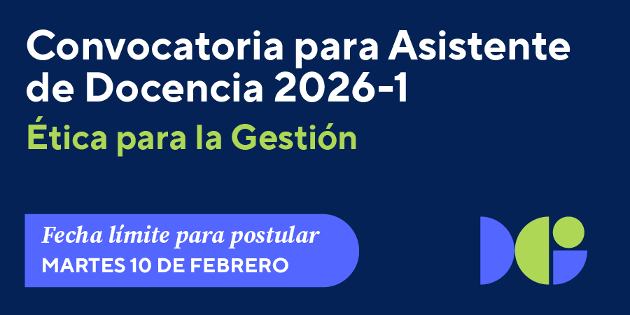 El Departamento Académico de Ciencias de la Gestión (DACG) invita a a los egresados de la Facultad de Gestión y Alta Dirección o de carreras afines a participar en la primera convocatoria para asistentes de docencia 2026-1, que está orientada a cubrir una plaza de asistente de docencia en el siguiente curso: